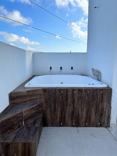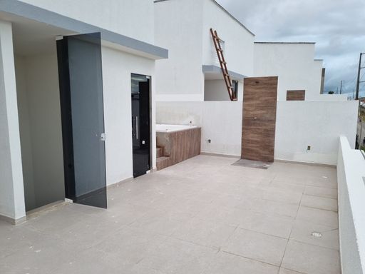 Casa triplex com 4 quartos, sendo 1 suíte Master, ampla sala de estar e jantar, com cozinha, área de serviço e na cobertura uma varanda gourmet e um SPA para 4 pessoas.